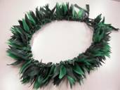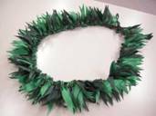 NO.2267 製作者:Chiemi.Oさん レイ:「ティーリーフ」 コメント:本物の葉っぱみたいに仕上がりました。ほつれ止めが白く葉に残ってしまいました。 |