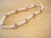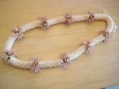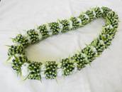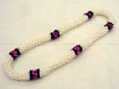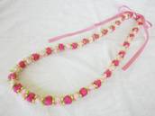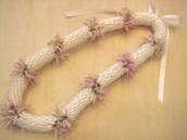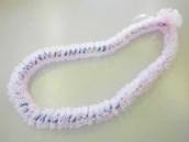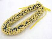 NO.2343 製作者:Naomi.Tさん レイ:「クラウン&パイナップルリリー」 コメント:ベージュのリボンが上品で、パイナップルリリーのコモレアビーズがかわいらしいレイに仕上がりました。 |