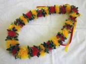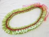 NO.2334 製作者:Noriko.Wさん レイ:「ナウパカ&ジンジャー」 コメント:リボンを丸めたり、とても楽しいレイでした。 |