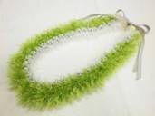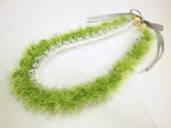 NO.2328 製作者:Mariko。Bさん レイ:「アヌヘア」 コメント:とても簡単でした。見れば見るほど、爽やか感があって素敵です。グリーンアップルとブレーとホワイトの色合わせが絶妙でした! |