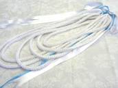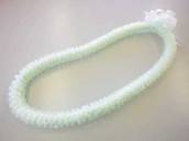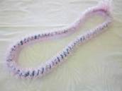 NO. 2348 製作者:Yumiko.Kさん レイ:「スパイラルシフォンwithリックラック」 コメント:ふわふわしたかわいいレイが出来てうれしいです。針を刺す位置が数ミリ違うだけでオーガンジーリボンの出る量がかなり変わるので、とても不思議でした。 |