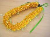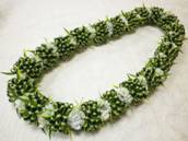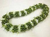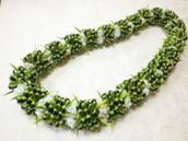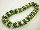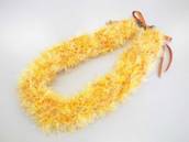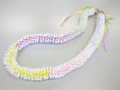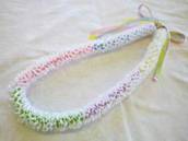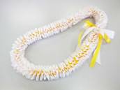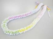 NO.2380 製作者:Ritsuko.Kさん レイ:「ソング・オブ・インディア」 コメント:リボンのカットが多く仕上がるか心配でしたが、ボリュームもあり、白い花がとてもかわいいレイができました。 |