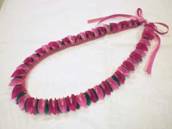NO.2391 レイ:「2ストランドチェーンレイ」 製作者:A.Hさん(上:ピンク) コメント:むずかしかったけど、たのしかったです。やったことがないからむずかしかったとおもいます。 製作者:U.Hさん(下:レッド) コメント:レイ作りが楽しかった。思ったより早くできた。編み方は1度やったことがあるからすぐできた。 |