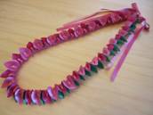 NO.2416 製作者:Ayako.Hさん レイ:「ミニプルメリア」 コメント:初めてのレイ作りでしたが、集中して一気につくりました。 |