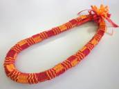 NO.2409 製作者:Mieko.Dさん レイ:「ハイビスカス」 コメント: 楽しく出来ました。三本ほど作ってフラの先生に作ってあげました。よろこばれました。 |