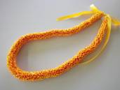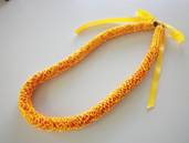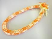 NO.2448 製作者:Masako.Oさん レイ:「カヒリ」(オレンジ&イエロー) コメント:切り替えまでの段数を間違っては戻りながら編みました。きつく編みすぎたかな? |