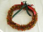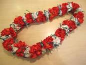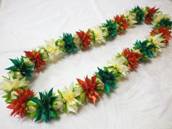 NO.2538 製作者:Kaoru.Yさん レイ:「ポインセチア」 コメント:作っていてとても楽しいレイで、色違いも作りたくなるような可愛いレイだと思いました。 |