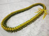 NO.2543 製作者:Kaoru.Yさん レイ:「ハニーサックル」 コメント:見た目にもむずかしそうな感じだったのですが、とても美しく、すてきなレイで、好きなレイです。 |