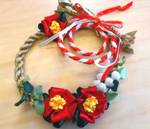 NO.2545 製作者:Masae.Kさん レイ:「ハイビスカス」 コメント:このお花の作り方を覚えたので、いろいろなものに応用できそうです。キャロル先生のようにネームタグにつけてもいいですよね。 |