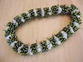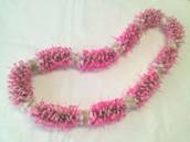 NO.2929 製作者:Naomi.Tさん レイ:「ソングオブインディア」 コメント:リボンのカットが大変でした。 控え目な色ですが、ボリュームのある素敵な レイに仕上がりました。 |