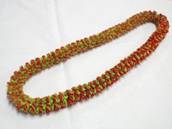 NO.3034 製作者:Kaoru.Yさん レイ:「3ストランド・フラワーローズ」 コメント:鮮やかな色合いなので、作っていてとても楽しいレイでした。Roseが同じくらいの大きさに編むのが少し難しかったです。 |