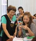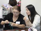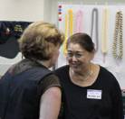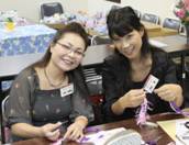 今年の課題レイは、キャロル先生がこのイベントの為に時間をかけて考えられた新作デザインばかりを取り揃えました。作品はどれも素敵で、どれを習おうか迷ったことと思います。また「素敵なレイ=手が込んだもの」…というのが常で、今回も例外ではなく…。でも、1レッスンを3時間に延長したことで、先生達とゆったり会話を楽しみながら、じっくりと作品作りに取り組んでいただけたことと思います。作品の中には新しい手法もあり、それぞれの作品に「なるほど!」と思えるようなポイントがいくつか含まれていて、リボンレイ作りの奥深さを感じていただけたのではないかな?と思います。続きはホームワークになりますが、マイペースで結構ですので、ぜひ完成させていただけると嬉しいです。