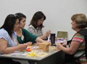 今年の課題レイは、キャロル先生がこのイベントの為に時間をかけて考えられた新作デザインばかりを取り揃えました。作品はどれも素敵で、どれを習おうか迷ったことと思います。また「素敵なレイ=手が込んだもの」…というのが常で、今回も例外ではなく…。でも、1レッスンを3時間に延長したことで、先生達とゆったり会話を楽しみながら、じっくりと作品作りに取り組んでいただけたのではないかと思います。作品の中には新しい手法もあり、それぞれの作品に「なるほど!」と思えるようなポイントがいくつか含まれていて、リボンレイ作りの奥深さを感じていただけたのではないかな?と思います。続きはホームワークになりますが、マイペースで結構ですので、ぜひ完成させていただけると嬉しいです。