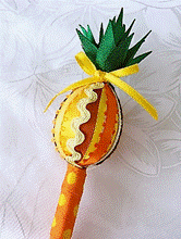 ビタミンカラーのリボンをいっぱい使ったパイナップルチャーム&パイナッポーペン、