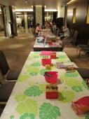先日はお暑い中、ホテルWS(横浜ロイヤルパーク、新宿京王プラザ)にご来場いただき、ありがとうございました。 また、赤いアンスリウムをお作りになった方は、早速キレイにアップされた髪に付けて下さいました。 皆様との楽しい会話をしながら作製のお手伝いができたこと、作品完成時には「可愛い」「キレイ」とご感想をいただけたこと、 |
