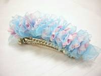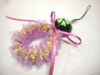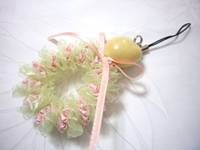 「フリルいっぱいのストラップ」かまたは「ふわふわシュシュ」と「フリルいっぱいのバレッタ」。