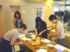 Leinaniワークショップのアシスタントをしてくれた明美ちゃん、ショップの店番と運転手をしてくれた主人。
