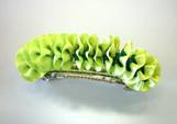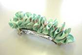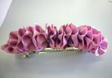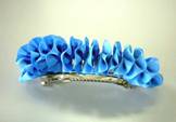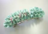 次に、リボンをチクチク縫っては縮め、縫っては縮め・・・、バレッタに縫い付けてできあがり。