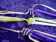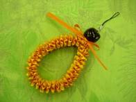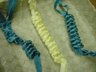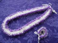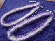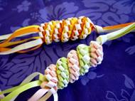 キラキラビーズの組み合わせのレイ。カッターを使ってリボンをカットしたおかげで、