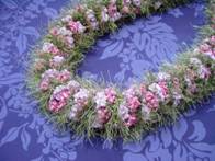 ひさしぶりにリボンを沢山カットするタイプのレイを作りました。濃淡ピンクリボン&