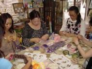 いつもカラフルなお色のレイばかり作っていましたが、たまにはシックな色合いのリボンレイも素敵でしょ? 皆さん普段からキルトで針扱いに慣れているせいか、2時間後にはピカケステッチをマスターされてました。