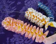 今回は「オハイアリイメレメレ」を作りました。10cm程の幅広リボンをフリンジにする作業はちょっぴり大変でしたが、針に通して形になっていくと、「カワイイ!」という声があがって、嬉しかったです♪