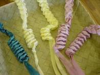 使いました。毛糸のふわふわな感触を楽しみながら、皆さんのレイがどんどん長くなっていきましたね♪