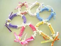 1月15日(木)・16日(金)にレッスンを行い、4本のリボンを折っていくと、5角形のレイになる、ウィービングレイ「モロカイ」を作りました。