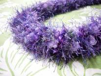 バイオレットはなんと飛行機の中で作られたそう!(凄い!)編み方がちょっぴり緩めでしたが、とてもボリュームのあるレイに