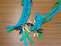 *〜「リボンレイレッスン@元町」4月のお教室〜* 4月11日(水)・14日(土)にレッスンを行い、「ストレス」を作りました。 「ストレス」は、「ブレード」の応用レイ。(これを考えたキャロル先生、凄い!!) 先生が「1度じゃ編み方を理解できなくて、キーッ!ってなるから“ストレス”って 言うのよ。」と教えてくれたレイ。確かに複雑!でも、レイの構造を理解して 順を追って編んでいけば、それほど難しくないことに気付きますヨ。 キャロル先生が名づけた「ストレス」というレイ。なるほど〜!と実感しながら、 忘れないうちに続きを作ってくださいね。Mahalo♪(Takako) |