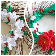 *〜「リボンレイレッスン@大阪」11月のお教室〜* 11月の大阪レッスンではキャロル先生の作品のレッスンをしました。 「ウインターワンダーランドリース」はお花と葉の配置が難しいと思いますが 出来るだけ立体的になるように配置してみて下さい。 「リリィ・オ・カ・ナイル」はお花作りが大変ですが頑張って下さいね Mahalo♪(Kinuko) |