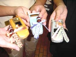 リボンレイ体験講座で作ったブレイドストラップ。携帯に取り付けたのを見せてくれました♪Mahalo!!