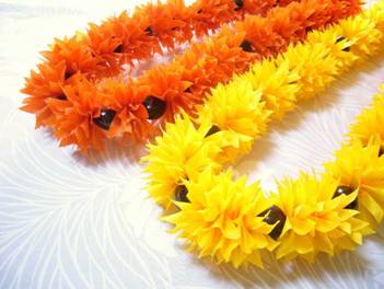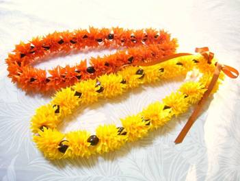 「Hala」とは幹の基がタコの足のように八方に伸びる「パンダナス」の木。 細長い剣のような葉(ラウ)は、マットやバッグ、箱や帽子などの織り細工(ラウハラ)が作られることで有名です。 この木は、枝先に堅いパイナップルに似た実がなります。それは小さな実が50個以上集まった集合果。 昔はこの実を食用にしたり、果実の先端をほぐして絵筆として利用したりしていました。 近年では、熟し始めのオレンジやダークイエローをした果実を使ったレイは、 “終わりと始まりを意味する”とされ、退職や卒業の時に身に付けることが多くなりました。 |