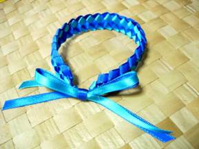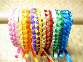2006年の「まなびかん 美術工芸合同作品展」の体験レッスン用に、作りました。 手首や足首につける手編みのレイです。 これから素足にサンダルの季節。足首のおしゃれとしていかがですか? ペットの首輪(アクセサリー)としてもいいかも♪