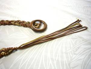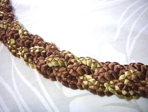 ブレード編みのアレンジで、メッシュ・ベルトを作ってみました。 ベルトの模様に波のような動きが出るよう、リボンの配置にもこだわりました。