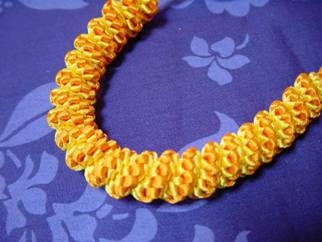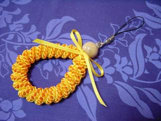 3mm幅のサテンリボンを使って、2カラーのサークルウィーブストラップを作りました。 手編みは編み方を覚えれば簡単です!