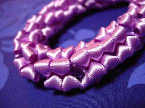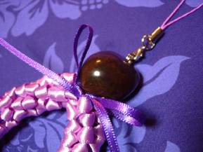 リボンの間に、ポニービーズが見え隠れしています。 クラウンフラワーをイメージして作りました♪バッグにつけてもカワイイ〜♪ (「FELISSIMOコレクション Couturier[クチュリエ] 2006年春夏号にて、ストラップキットが買えます!)
