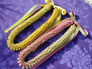 同じ太さのリボンを外表にして重ね、縫い上げています 角度によって、色の出方に変化があり、面白いです♪ お色はお好みで…