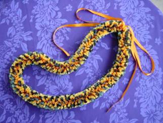 ファイヤークラッカーは、”マネッチア”とも言われ、つる性の植物です。 ハードリボンを2枚重ねて、クルクル巻いて針に通しています。