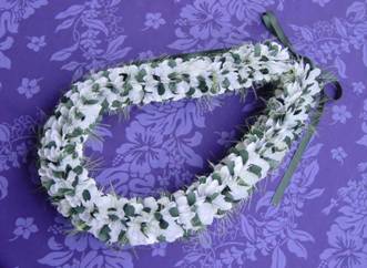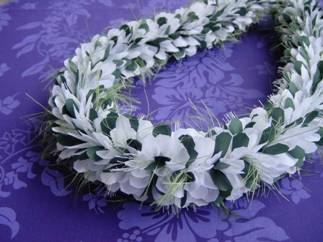 ガーデニアは、”くちなし”のこと。 生花は、とっても良い香りがします。 ホワイトとグリーンのとっても爽やかなレイになりました♪