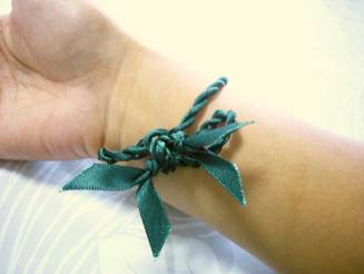 「レイデー・セレブレーション」でもらった新鮮なティのクーペ・エがとても素敵だったので、 それをヒントにリボンで作ってみました。 ウクレレを弾く時のブレスレットとして、ウクレレを傷つけないよう、 金具など使わずに仕上げています。 ティの部分を少し長めに仕上げて、チョーカーとして使ってもカワイイかも♪