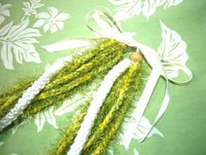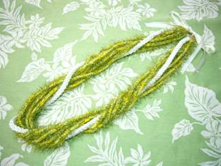 フレッシュなパカラナは緑色と黄色の小さなお花で、 スミレのような甘くてやさしい香りがあります。 レイにする花として、とても人気のある花のようです。 チャイナタウンのレイショップで、幾重にもなったパカラナのレイを 見てみたいと思いました。