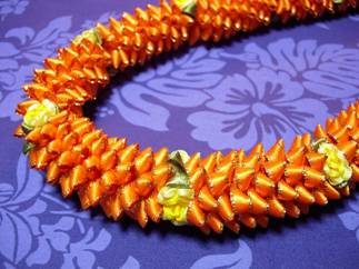 オレンジ色のラメリボン(リボンの縁にラメが入っています。)を、ピカケステッチ。 間に、リボンでできた黄色のお花のパーツを入れて。。。