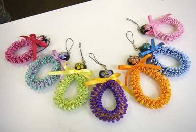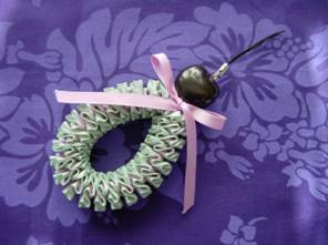 プルメリアの手法で、リボンを細めにし、携帯ストラップにしてみました♪ お好みのお色で… ククイナッツがついてます