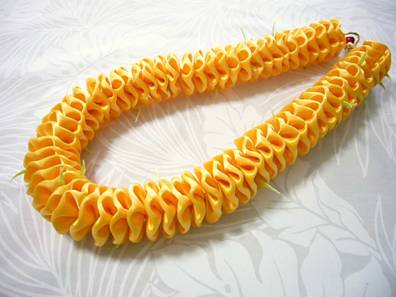 「Pua kenikeni」のレイをアレンジして、ペット・アクセサリーを作りました。 自分のレイとお揃いのアクセサリーをワンちゃんにも作ってあげるといいかも♪ 接続金具のところに、鈴やネームプレートをつけてあげると、Cool!! 【注意!】強度の問題から、「ペット・アクセサリー」にリードをつけることはできません。