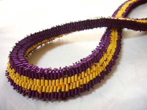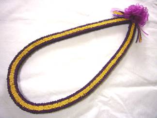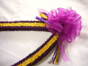 針と糸を使わずに作る、手編みのレイです。 形は長方形(=レクタングル)。 シフォンのリボンボウで仕上げました。