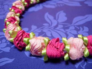 “ロケラニ”といわれる八重咲きのバラは、甘い香りと愛らしいピンク色がハワイの人々を魅了し、 外来種であるにも関わらず、マウイ島の島花になりました。 ロケラニは新鮮なまま長持ちすることから、レイにとても適しています。 そんなロケラニをイメージして作りました♪