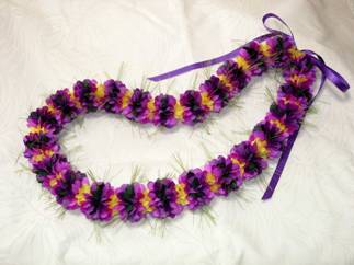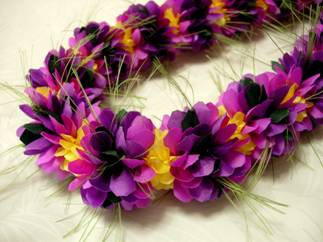 紫と黄色のコントラストがとっても綺麗♪ ハードリボンをカット・トリミングしたり、幅広リボンを裂いてフリンジを作ってから、針に通していきます。 ちょっとわかりにくいですが、黄色いリボンの間にビーズも入っています。 サンバーストとは「雲間から漏れる強い日差し。太陽のようにあらゆる方向に光を出す 「花火」や「宝石」という意味らしいです。