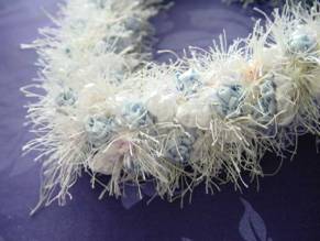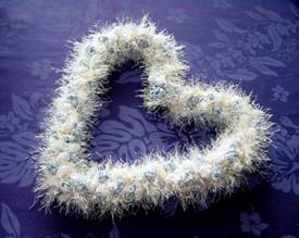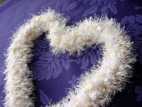 お友達の結婚のお祝いに、ハートのリースを作りました。 ローズクロシェットと同じ手法で、編んでいます。 芯にワイヤーを通していますので、自由自在に形が作れます。 とってもスィートなリースになりました♪