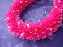 私がリボンレイと最初に出会った時、「この素敵なレイ、どうやって作ったんだろう?」と、とても不思議に思いました。 |